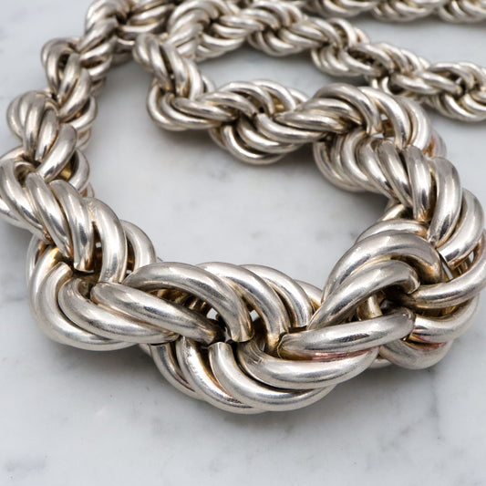 Substantial vintage sterling graduated rope necklace, 18" long