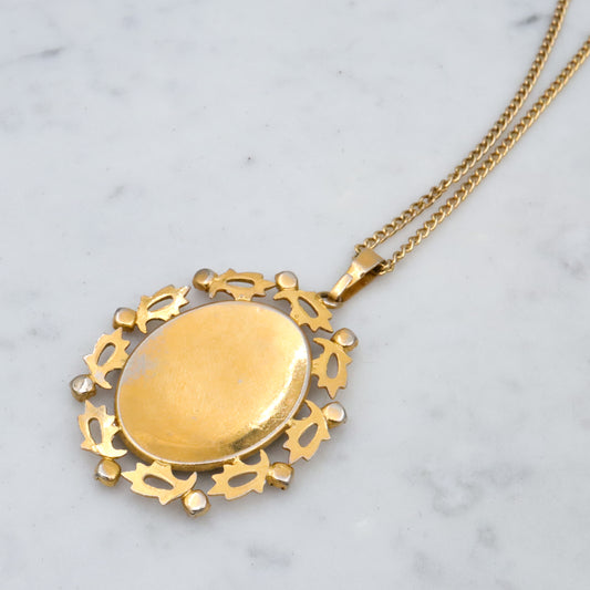 Antique Deco Czech porcelain portrait gilt metal pendant necklace