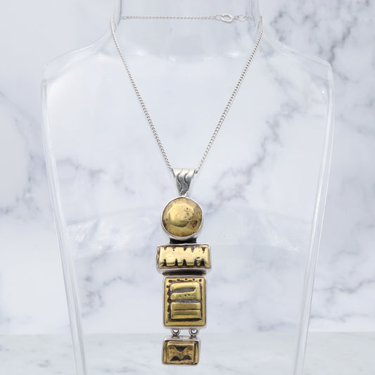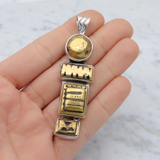 Retro Amy Kahn Russel sterling & carved pyrite pendant