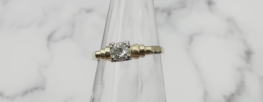 Antique Deco 14K Gold Old European Cut Solitaire Diamond Ring - Size 6