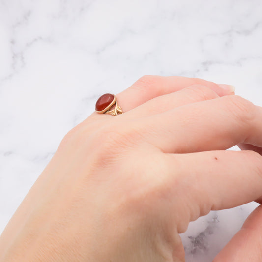 Antique Art Deco Uncas sterling & carnelian agate ring, sz 5.25