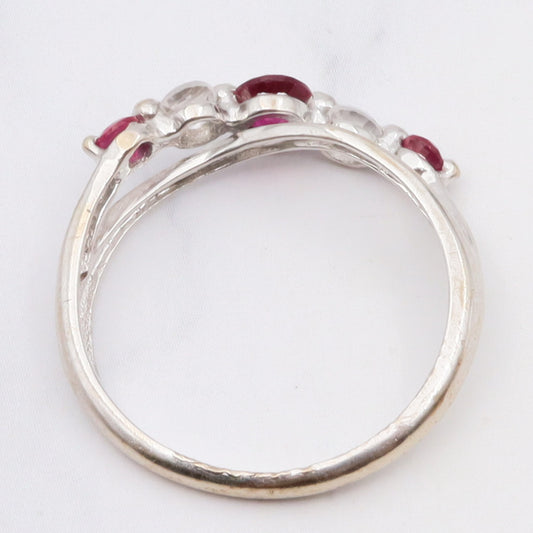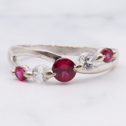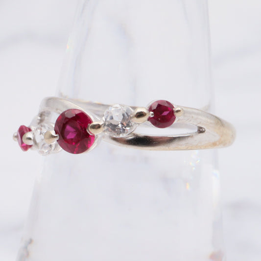 Vintage 10k white gold simulated ruby and cubic zirconia ring, size 6.5