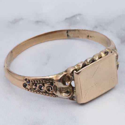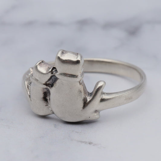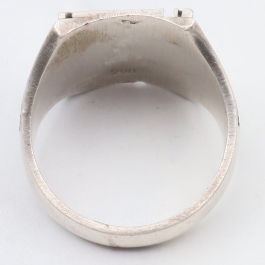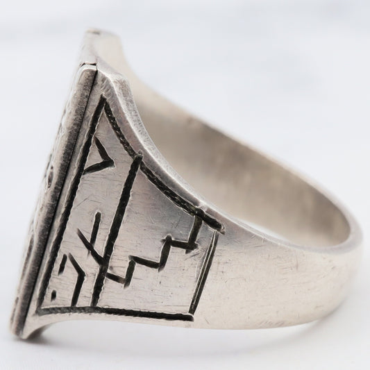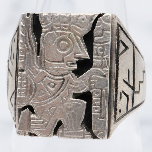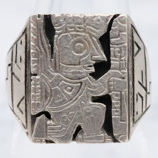 Antique Peruvian .900 silver Incan diety block ring, sz 5.25