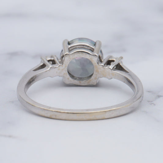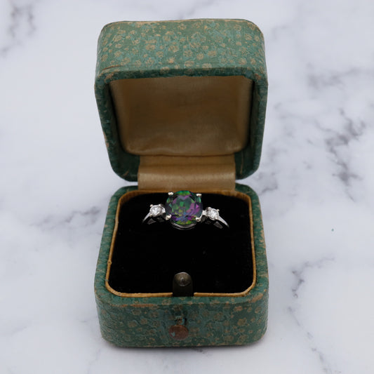 Vintage 14k white gold, mystic topaz & diamond ring, sz 7.75