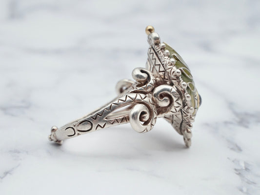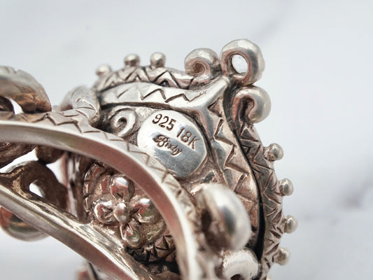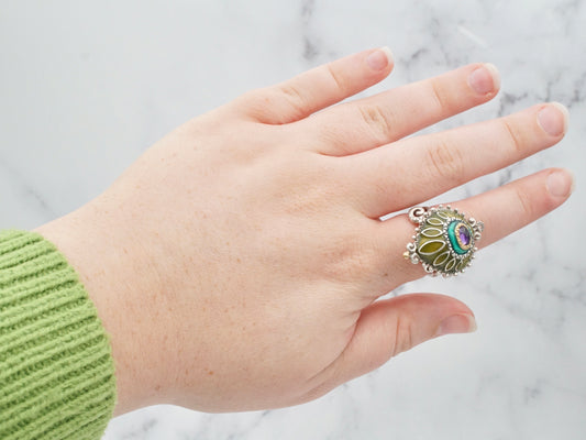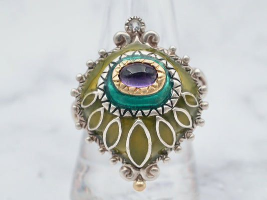 Impressive vintage Barbara Bixby sterling and 18k gold enameled ring with amethyst accent