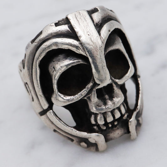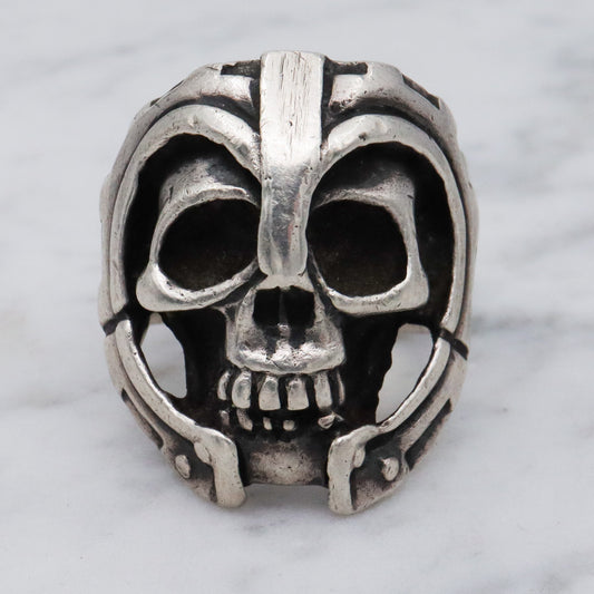 Retro sterling silver skeleton warrior heavy metal ring, sz 12