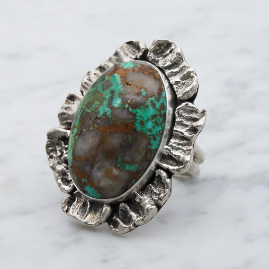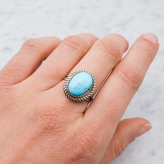 Vintage Navajo sterling silver turquoise ring, sz 7