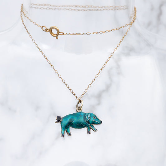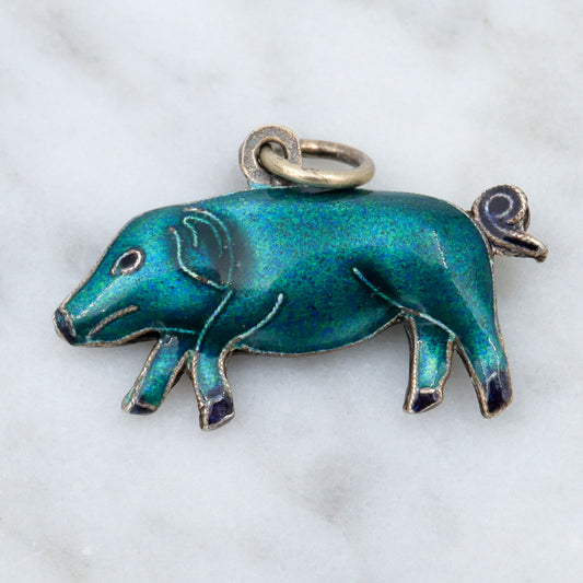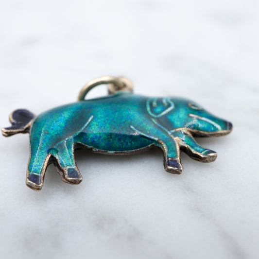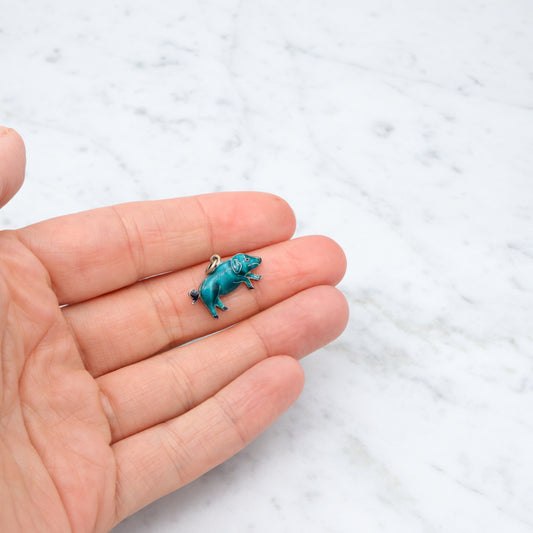 Vintage Chinese export sterling silver & cloisonne enamel double sided blue pig charm