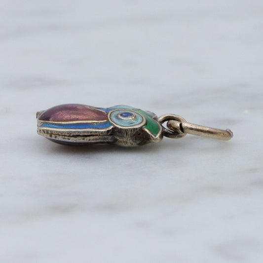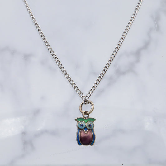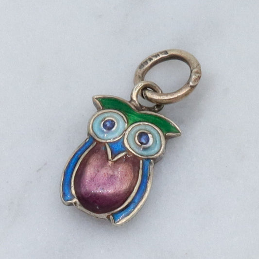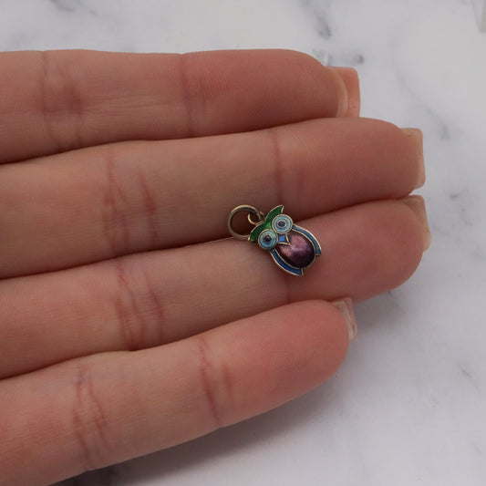 Vintage Chinese export sterling silver & cloisonne enamel double sided owl charm