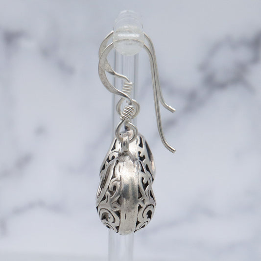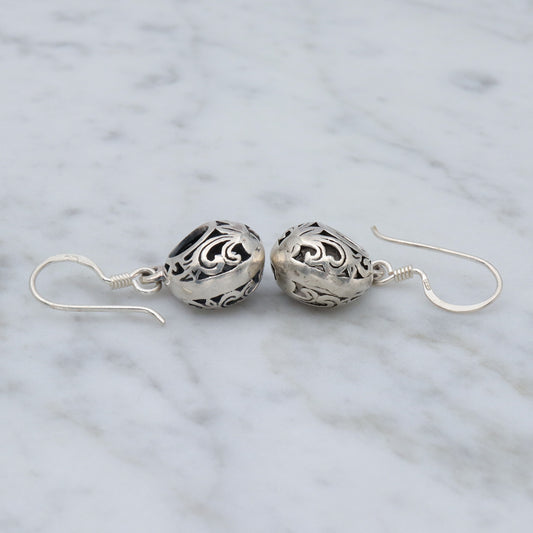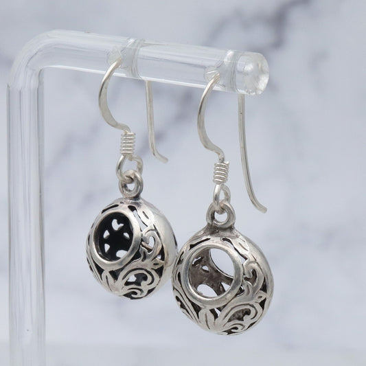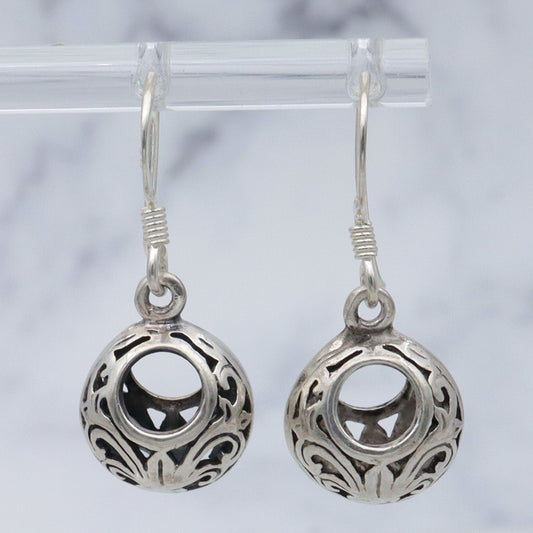 Vintage sterling Thai cutout design open circle bead drop earrings
