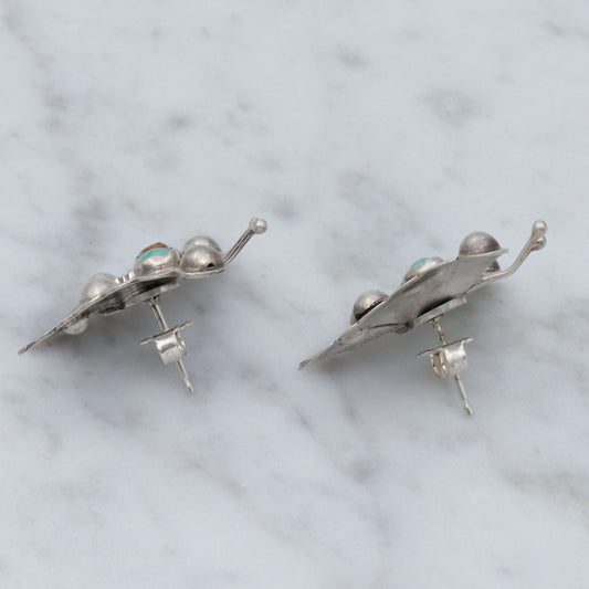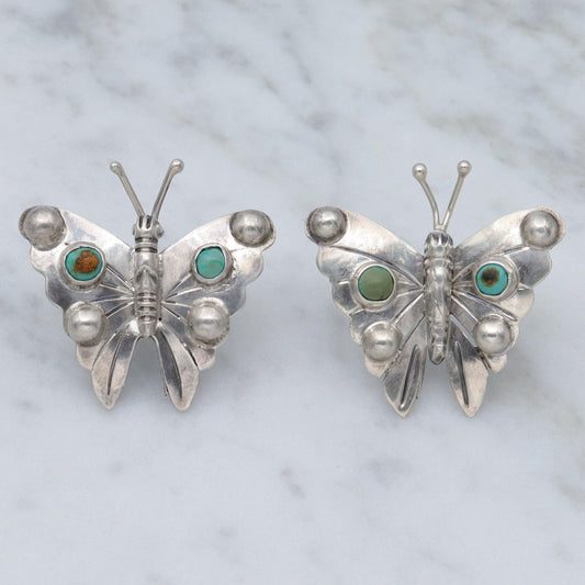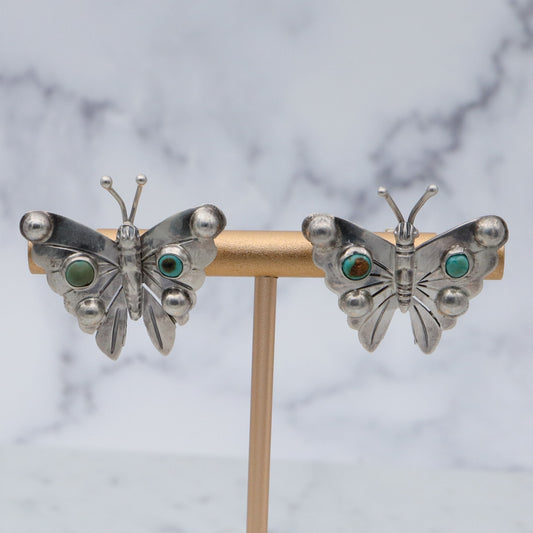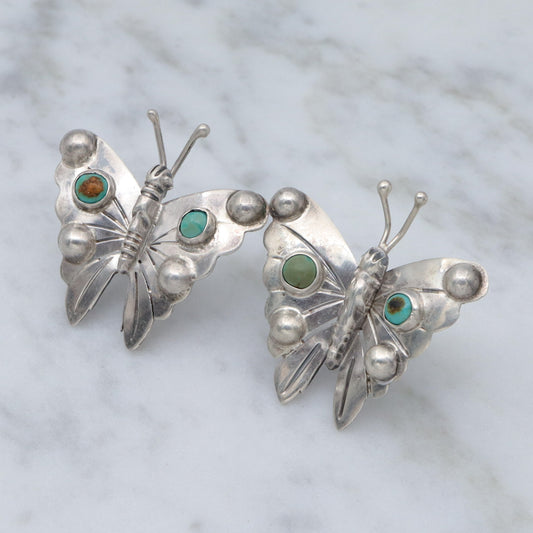 Antique 1930’s Mexican sterling & turquoise butterfly earrings