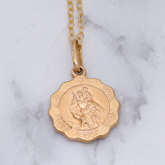 Vintage Italian 10k gold St. Christopher medallion necklace