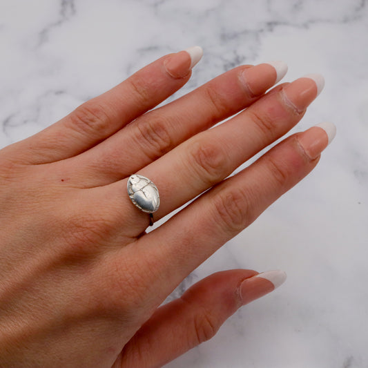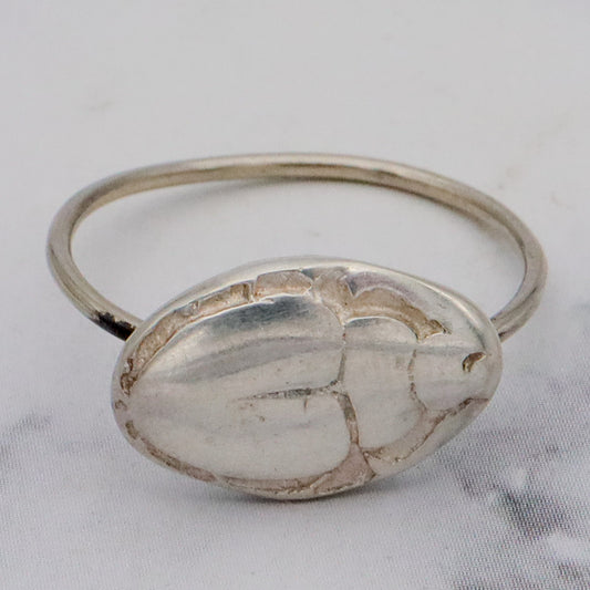 Vintage petite sterling scarab beetle medallion ring, sz 7