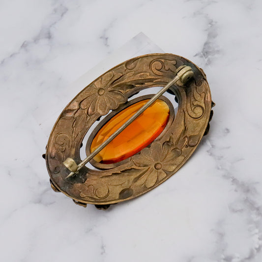 Antique Art Deco Alfred Phillipe Trifari gold-plated & rhinestone floral bouquet basket brooch
