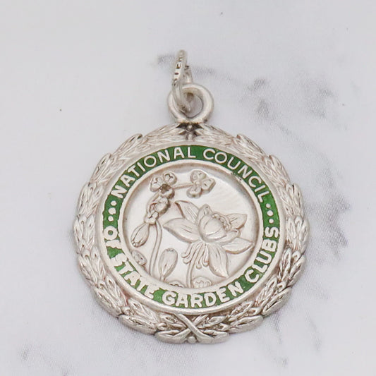 Antique sterling enamel "National Council of State Garden Clubs" medallion pendant