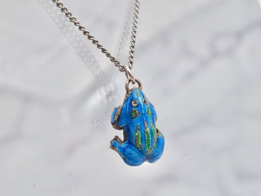 Vintage Chinese sterling & cloisonné enamel frog charm