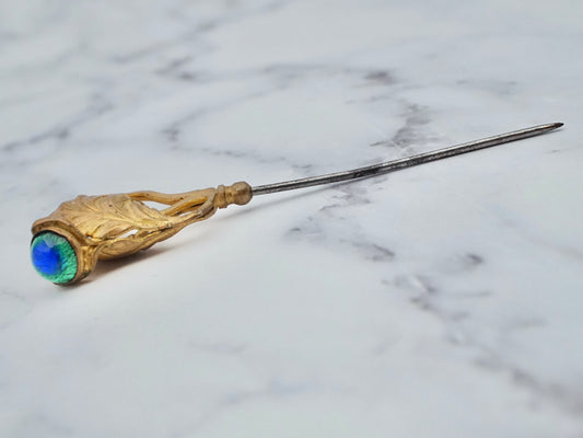 Antique Victorian gilt metal and glass peacock eye stickpin
