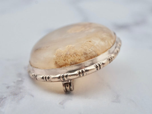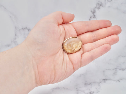 Antique Victorian 12k gold filled yellow dendritic agate brooch