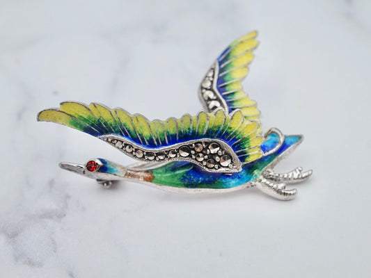 Vintage German sterling enamel and marcasite Alice Caviness brooch