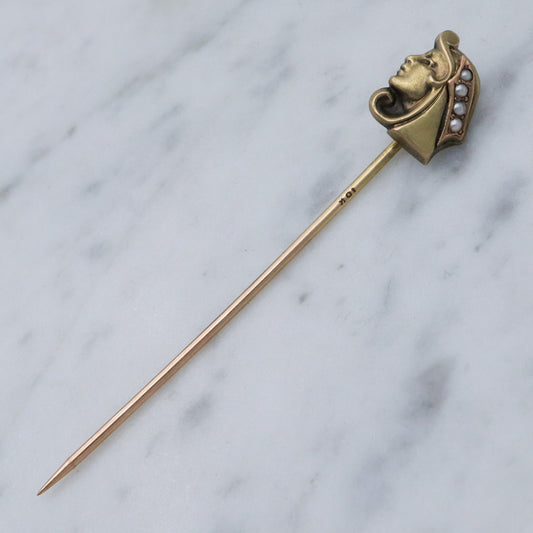 Antique Victorian gold filled Italian pietra dura plaque stick pin