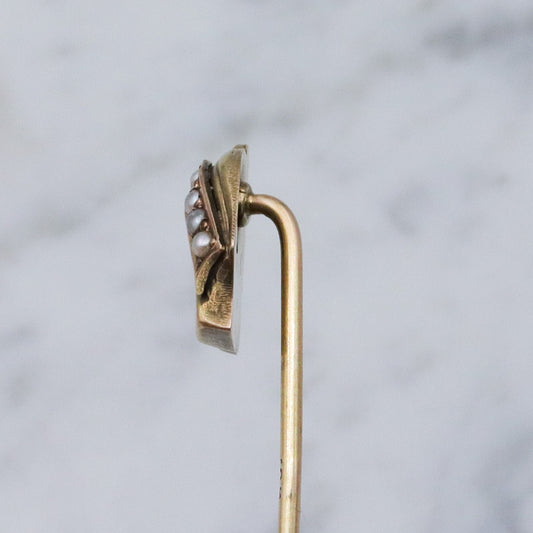 Antique Victorian Etruscan Revival 10k gold rose cut diamond flower stick pin