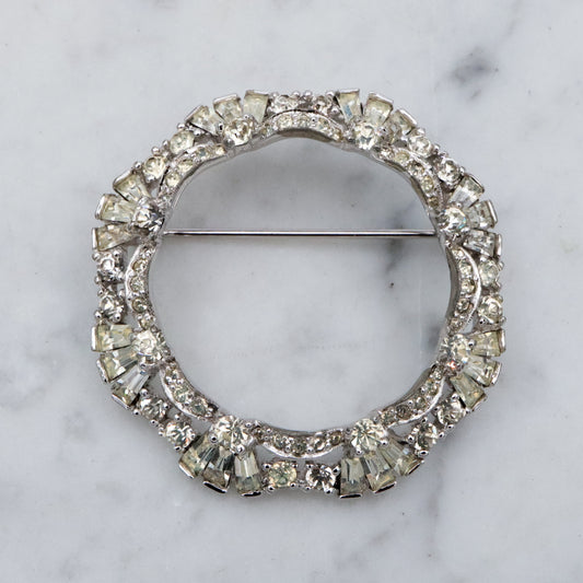 This pair of Mid-Century Modern sterling silver pins were made by Carl Ruopoli and designed for Back Starr & Gorham. They feature an Art Nouveau style swirl in a cube shape with a domed center. These pins weigh 28 grams and measure 36mm tall. They are in good vintage condition with surface wear and are marked as shown.