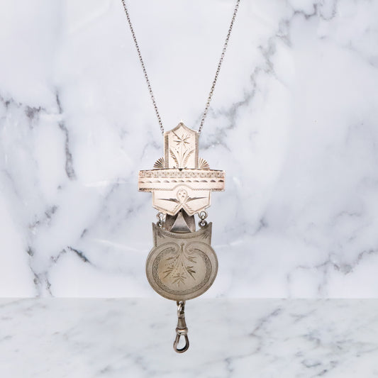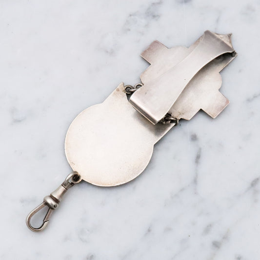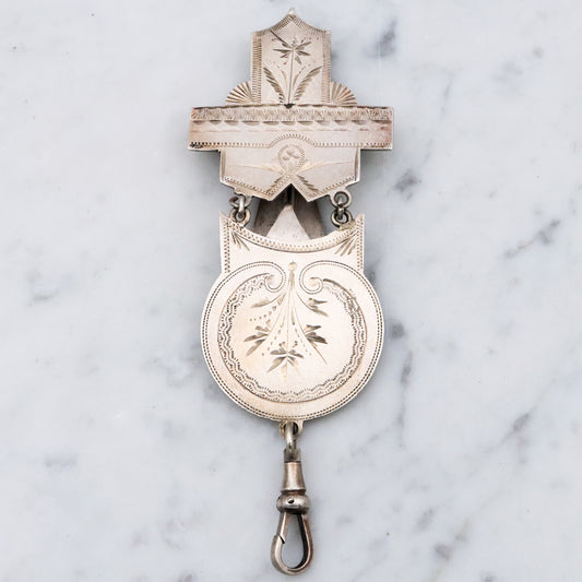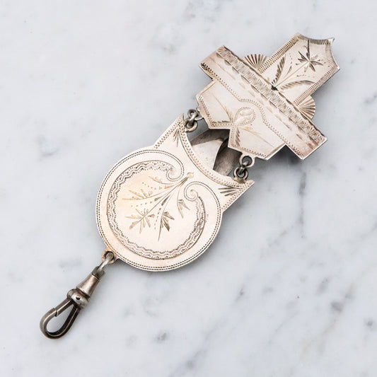 Antique Aesthetic Period engraved sterling chatelaine clip