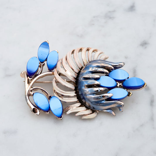 Vintage Boho turquoise & coral gilt metal filigree flower drop earrings