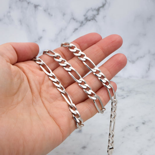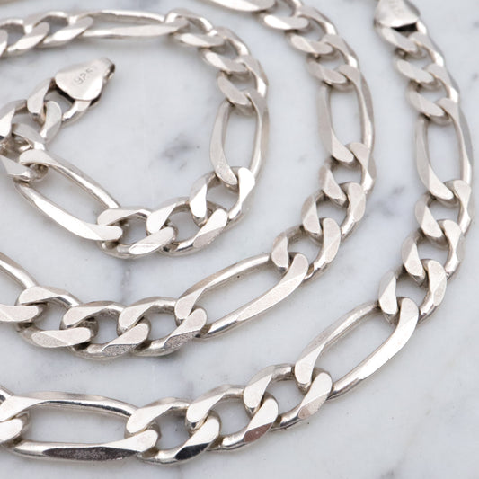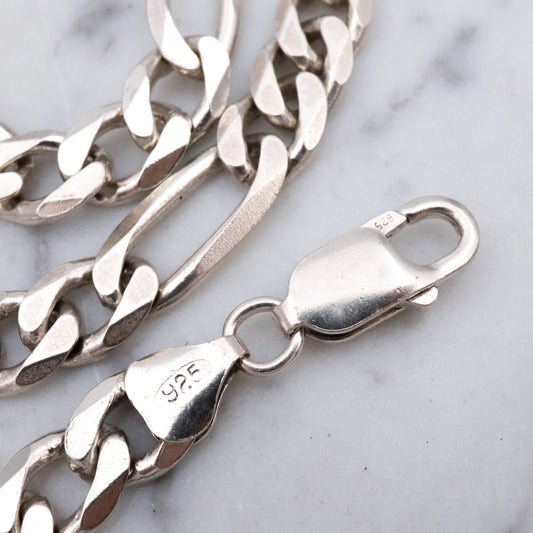 Vintage Italian sterling 7.5mm figaro link necklace, 20"
