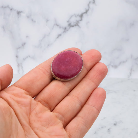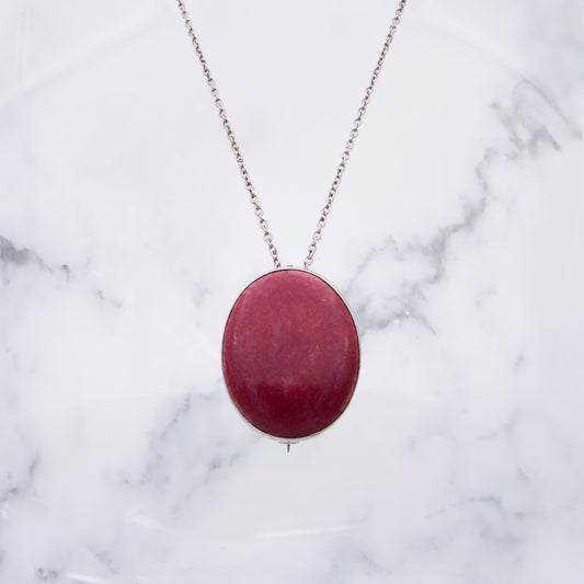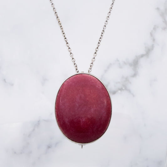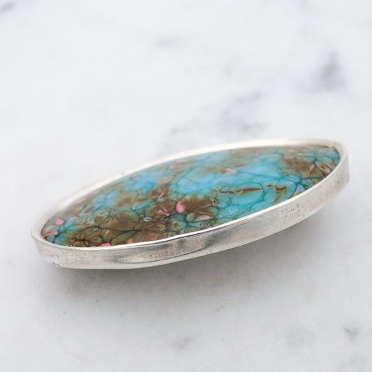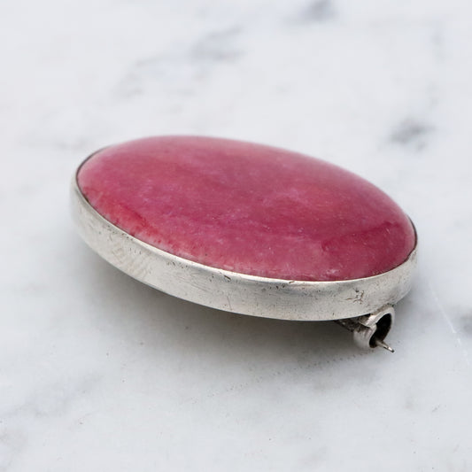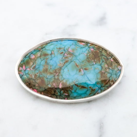 Antique Arts & Crafts rose red glazed pottery sterling brooch