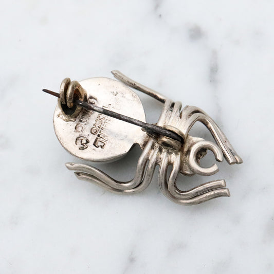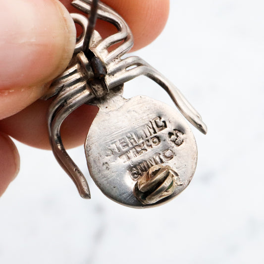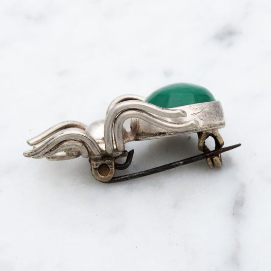 Mid Century Mexican sterling & green agate spider pin by Quinto