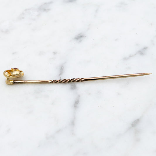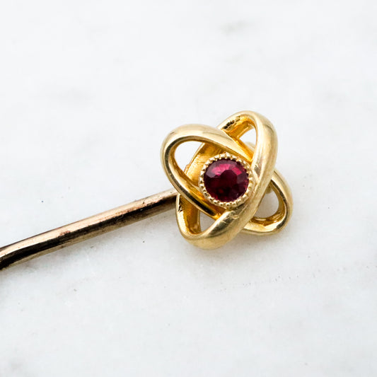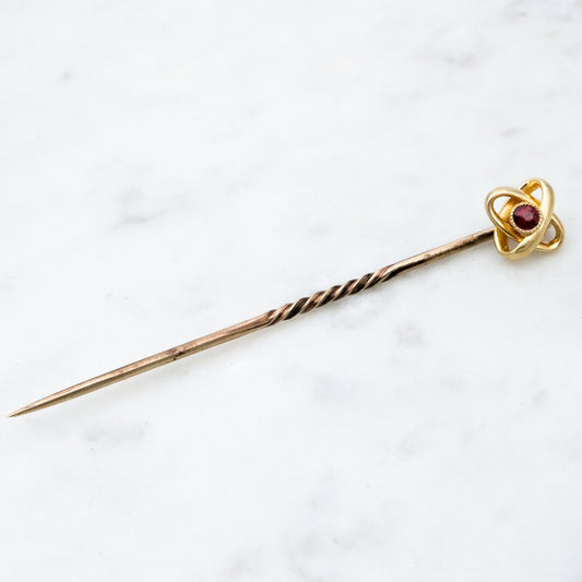 Antique Victorian 15k gold ruby infinity knot stick pin