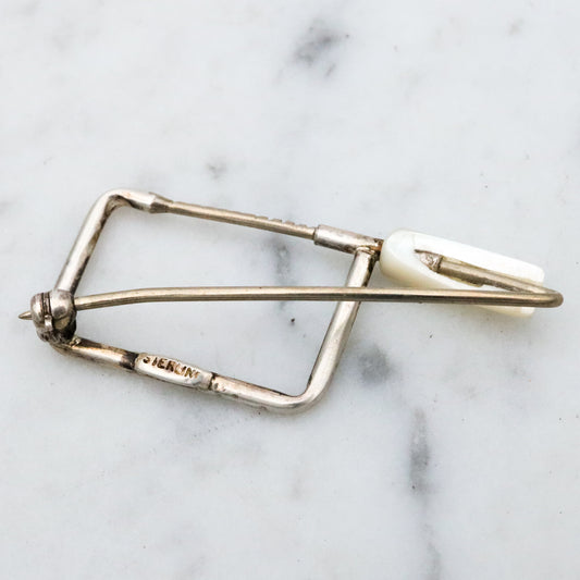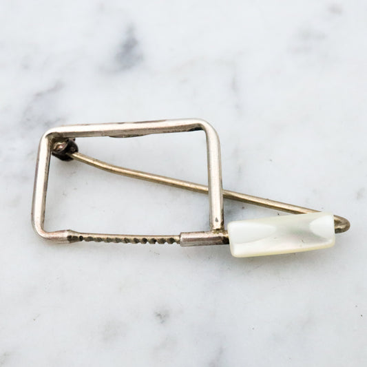 Unique one of a kind sterling & mother of pearl coping saw brooch
