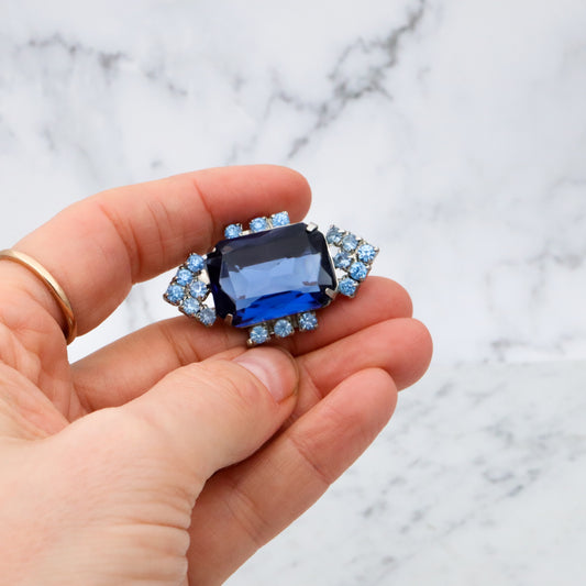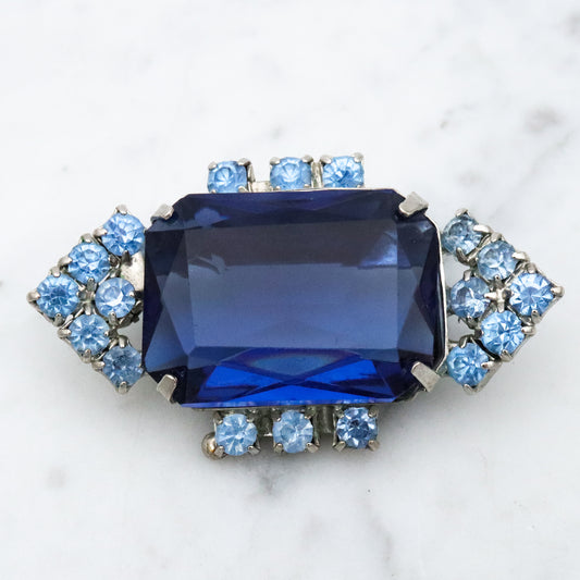 vintage chunky sapphire rhinestone geometric brooch