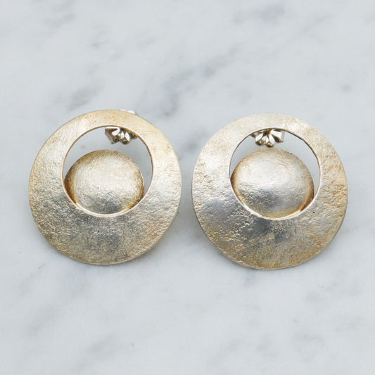 Mid Century gold vermeil sterling silver disc earrings, artist signed