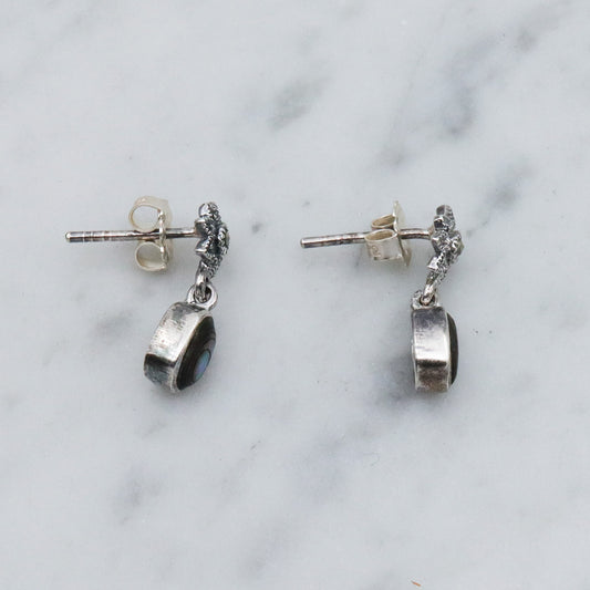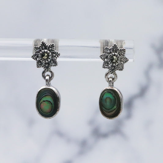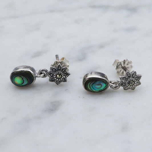 Vintage sterling silver abalone & marcasite petite drop earrings