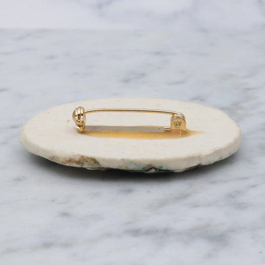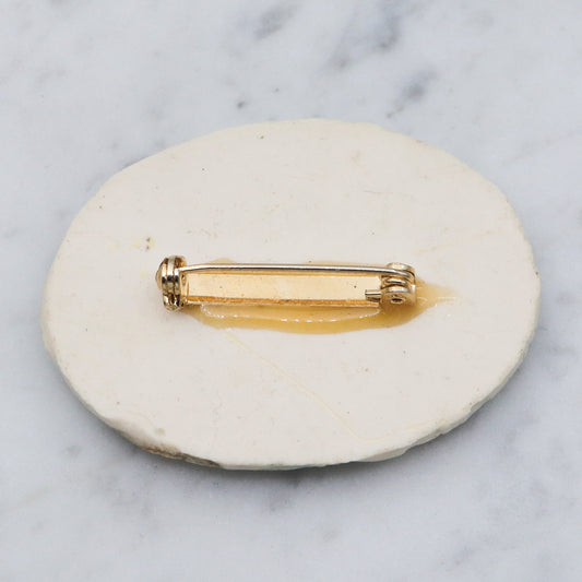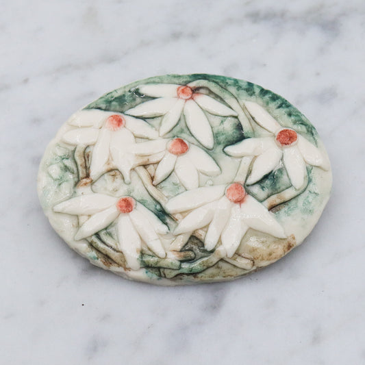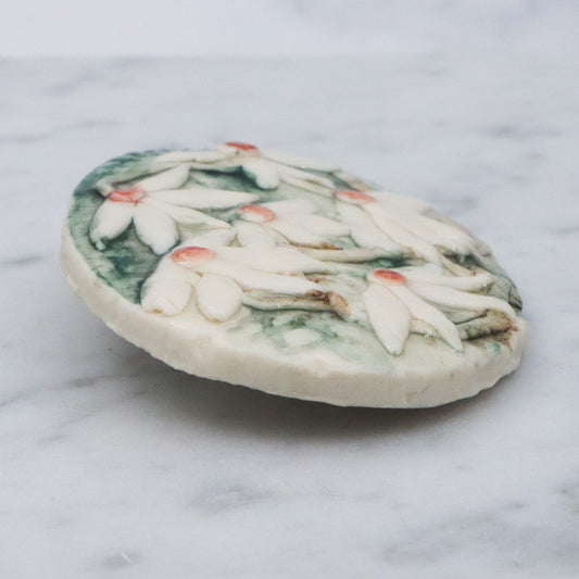 Vintage handmade porcelain white flower plaque brooch