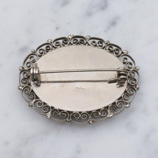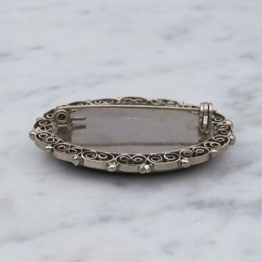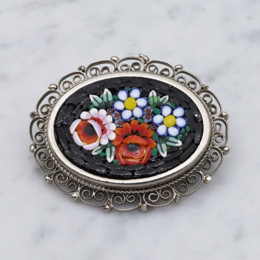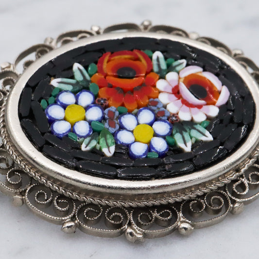 Vintage Spanish silver tone micro mosaic tile brooch