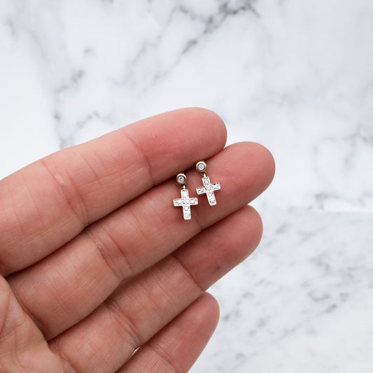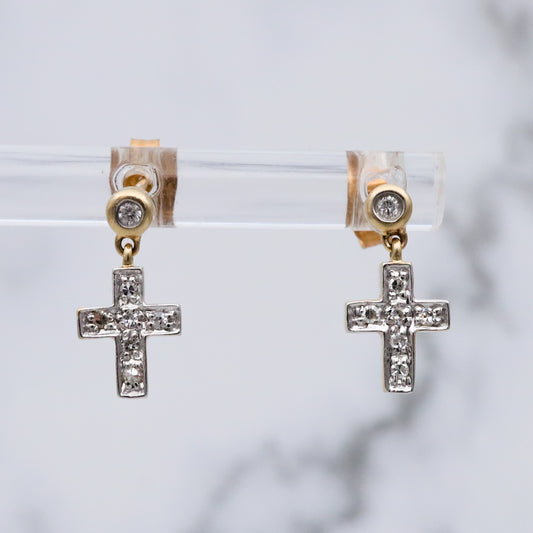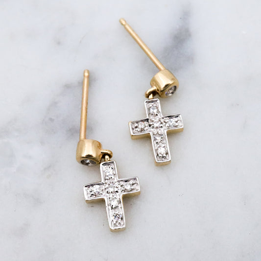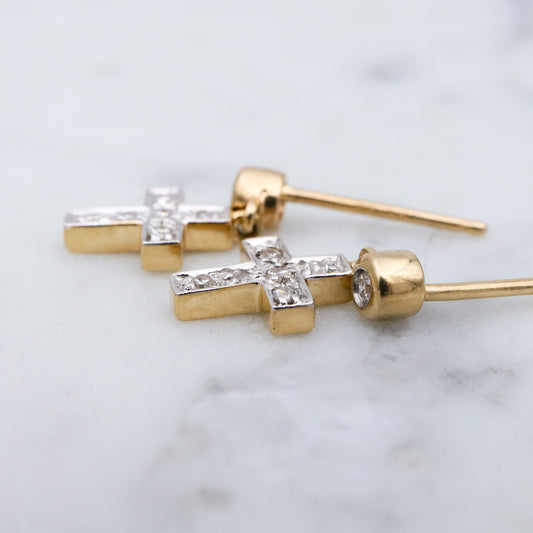 Vintage 14k gold petite cross earrings