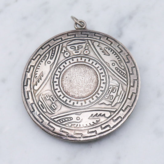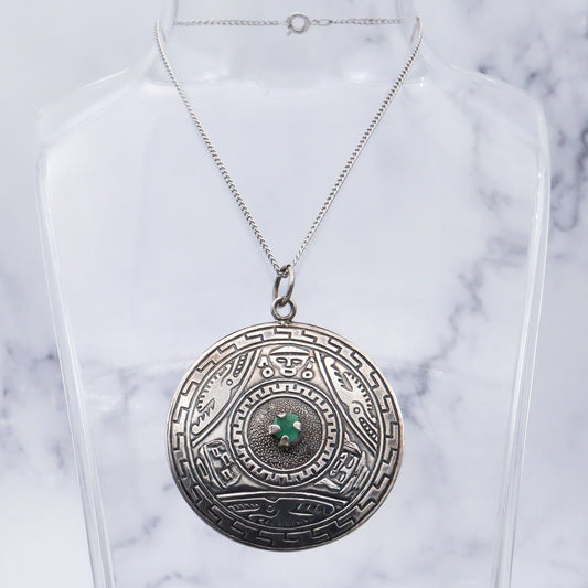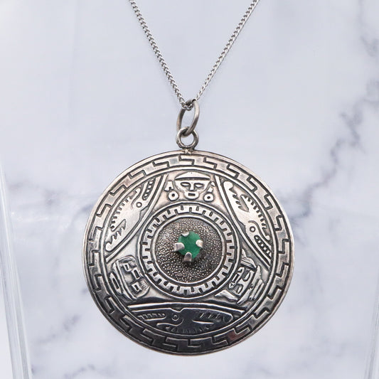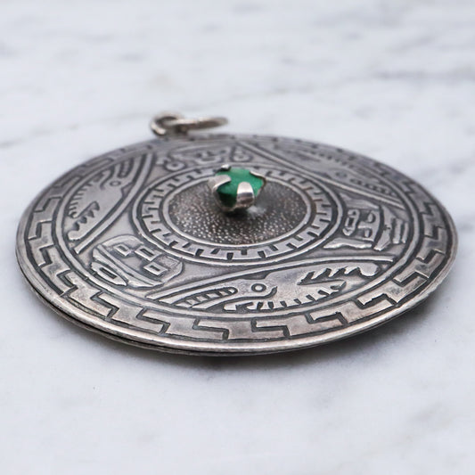 Vintage Peruvian sterling silver raw emerald pendant medallion