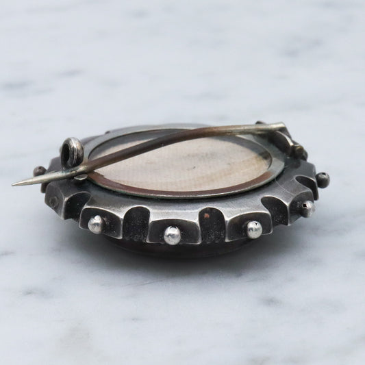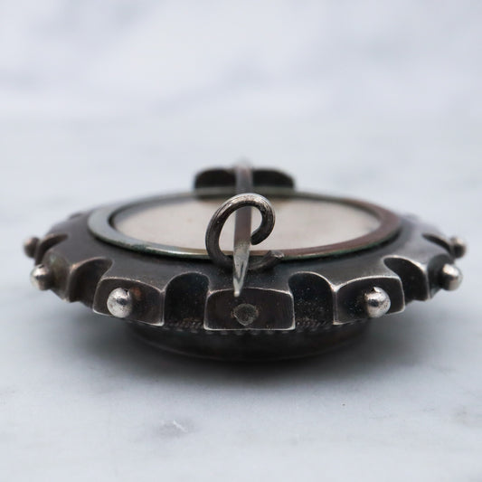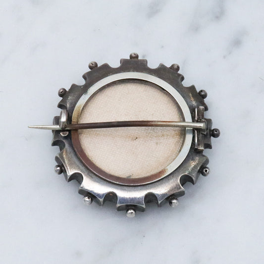 Antique Victorian Aesthetic sterling silver mixed metals rondel brooch