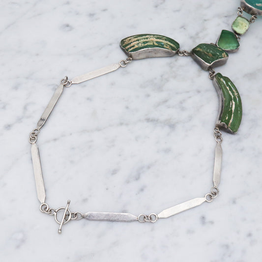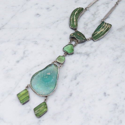 Vintage handmade Israel sterling silver ancient Roman glass lavalier style necklace