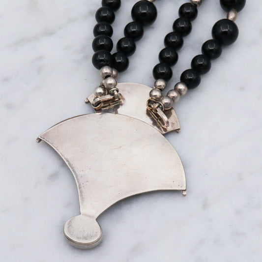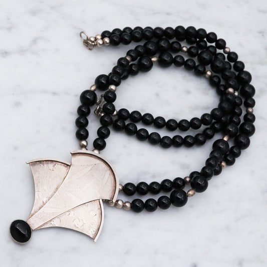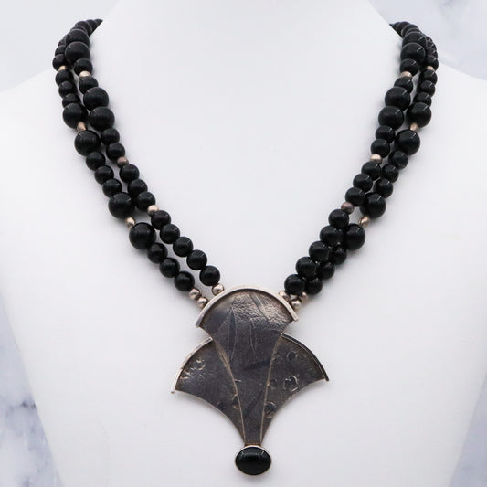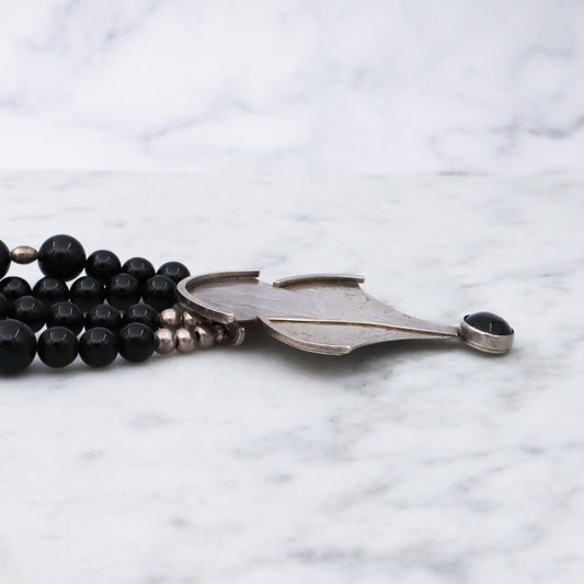 Vintage Modernist artist D. McAfee sterling silver onyx signed necklace