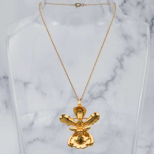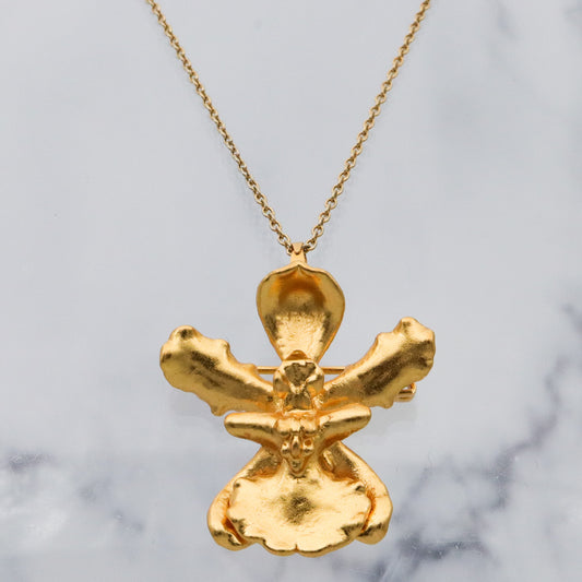 Vintage 22k gold dipped orchid flower brooch / pendant