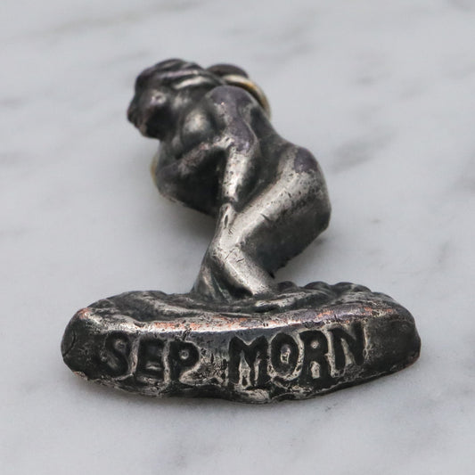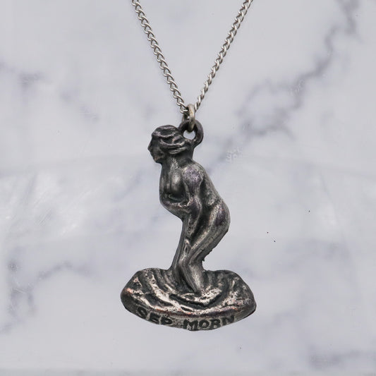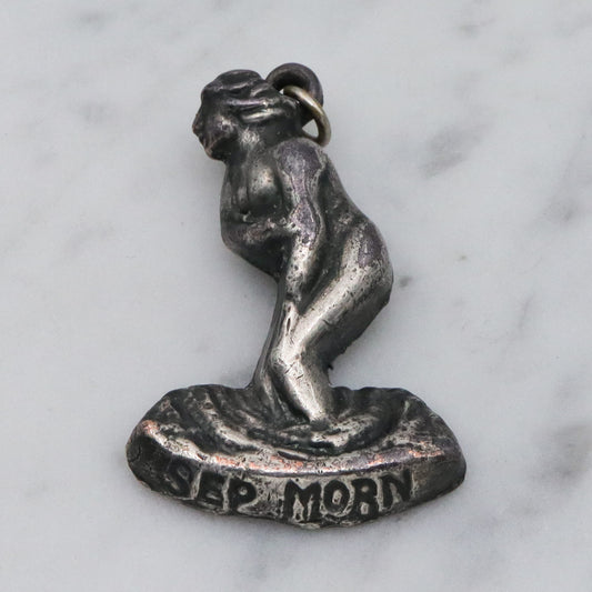 Rare Antique silver plated "September Mourn" statue charm pendant