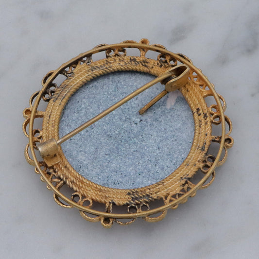 Antique Victorian hand painted roses porcelain pinchbeck brooch
