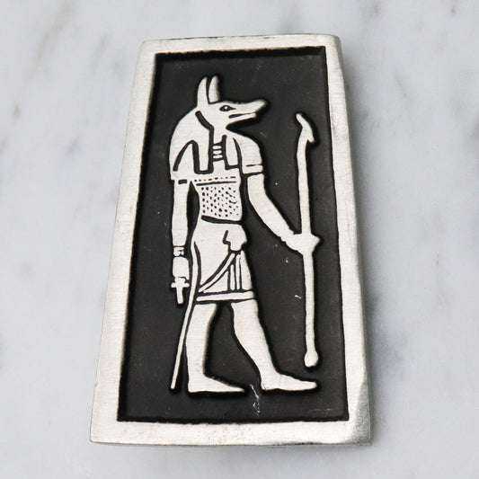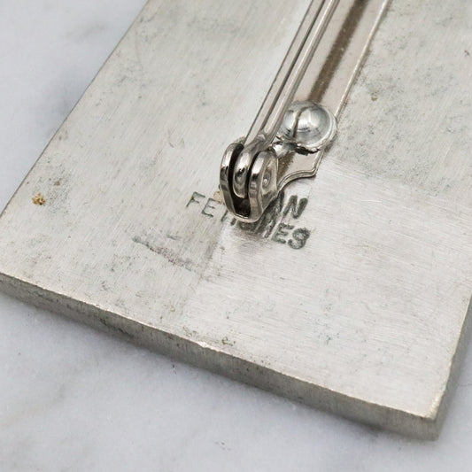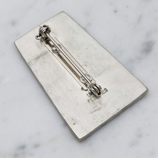 Mid Century Symmetalic sterling silver & gold filled carved scarab crescent moon brooch