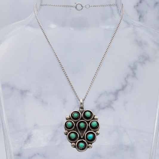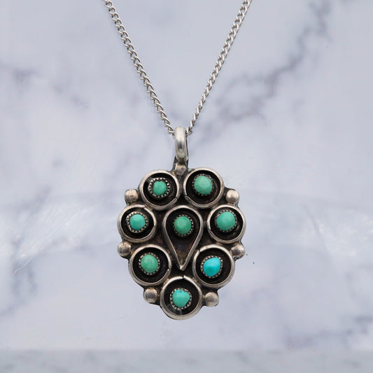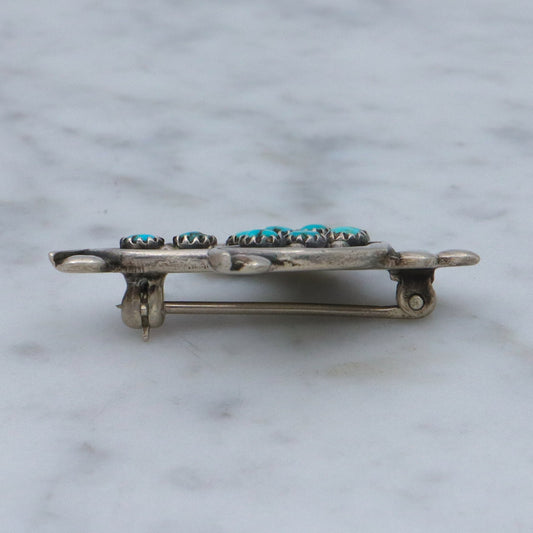 Vintage Zuni sterling & turquoise petit point cactus flower brooch