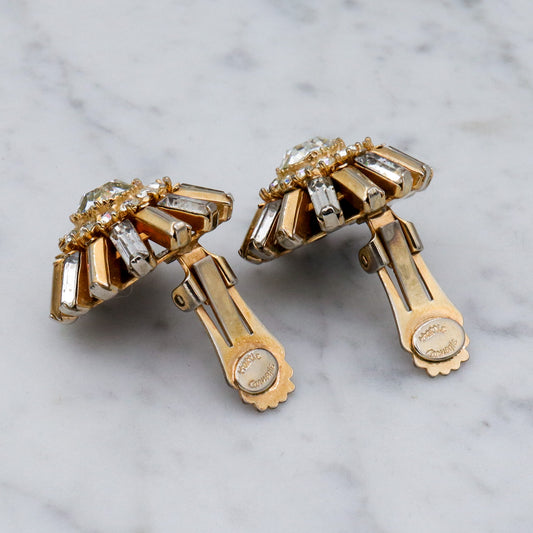Vintage MCM Hattie Carnegie gold plated rhinestone sunburst earrings