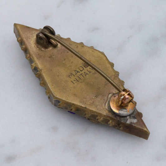 Antique pair of Art Deco cobalt blue glass & silver painted buttons